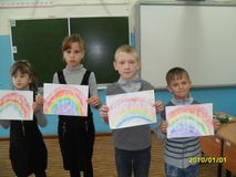 На 5 уроке ученики 1-4 классов, разбившись на команды, отвечали на вопросы, решали логические задачи, участвовали в литературном, математическом, спортивном конкурсах, сочиняли стихи, дополняли выражения, узнавали о том, из каких растений можно сварить привычные им каши. И набирали очки. А в конце марафона рисовали радугу, которая высветила на листах такие важные слова «мир», «дом», «школа», «урок». Конечно, победила дружба, но самыми смекалистыми были мальчики 3 класса.